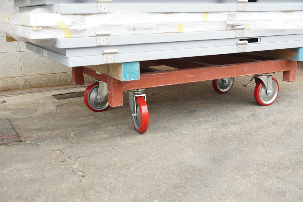 よくある重量用台車は、L字のアングルやC型のチャンネルなどの軽量鉄骨と、天板に鉄板を配置して強度を確保していることが多いのですが、この天板が重いのです。
