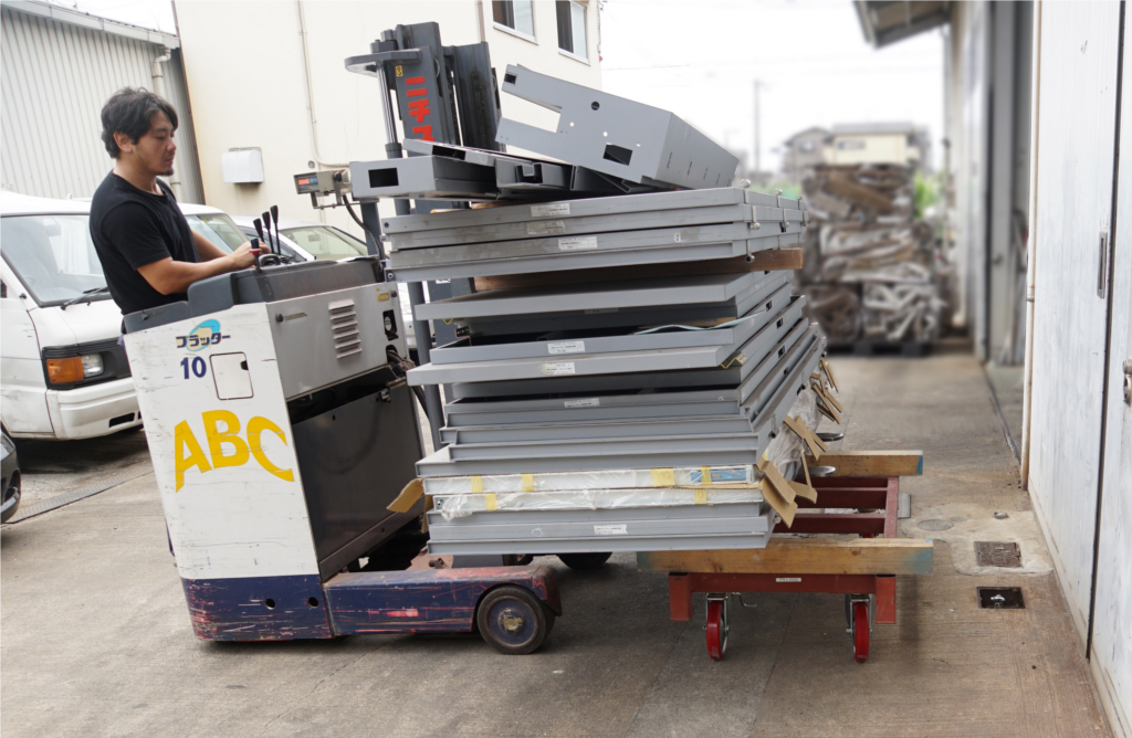 また、貨物用エレベーターなどを利用する際、台車が軽くなる分、荷物をたくさん乗せることができます。
